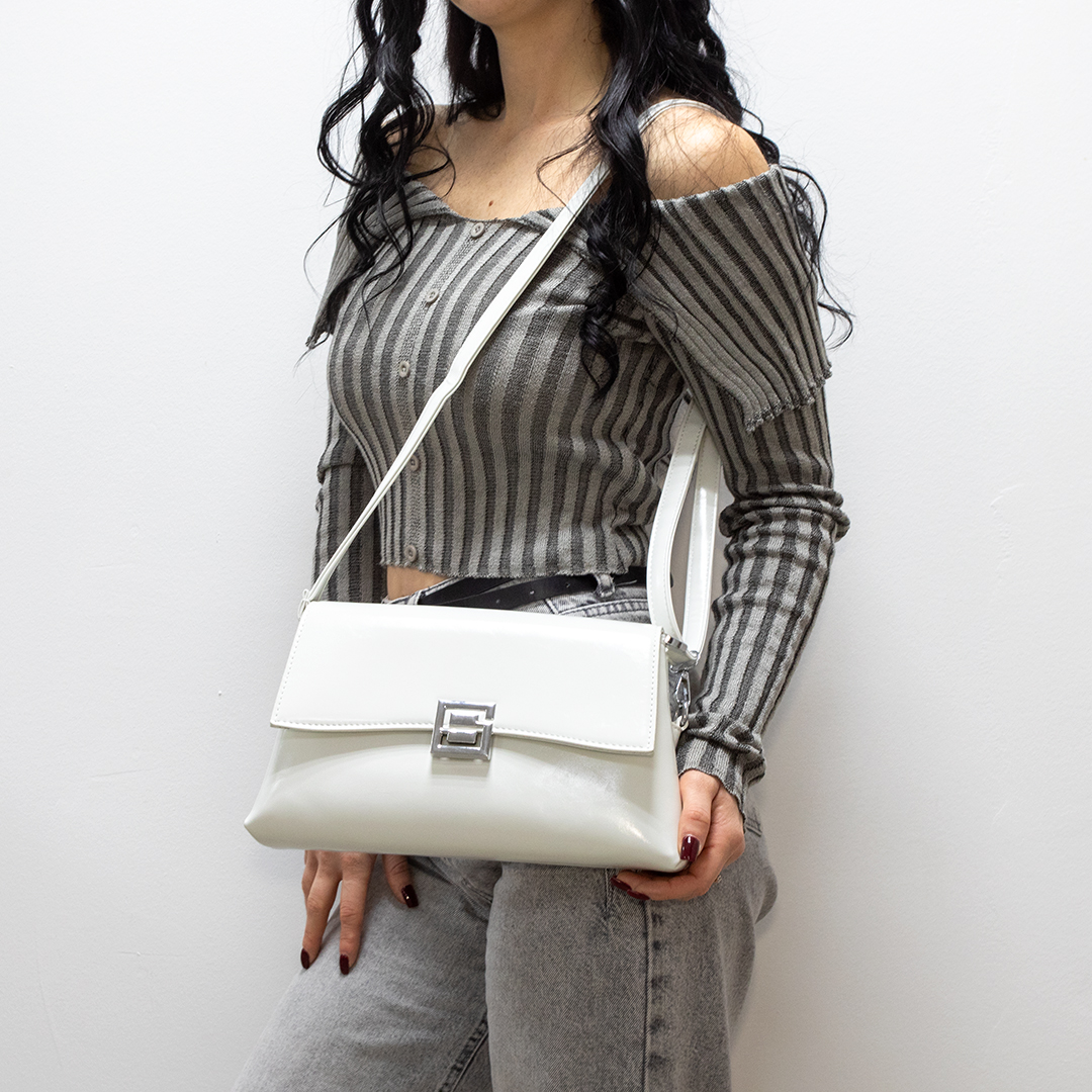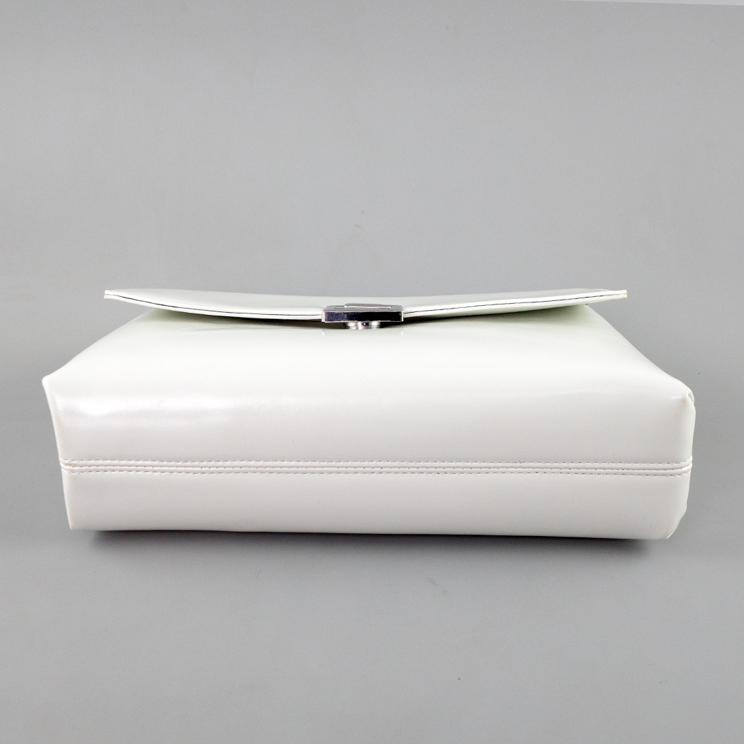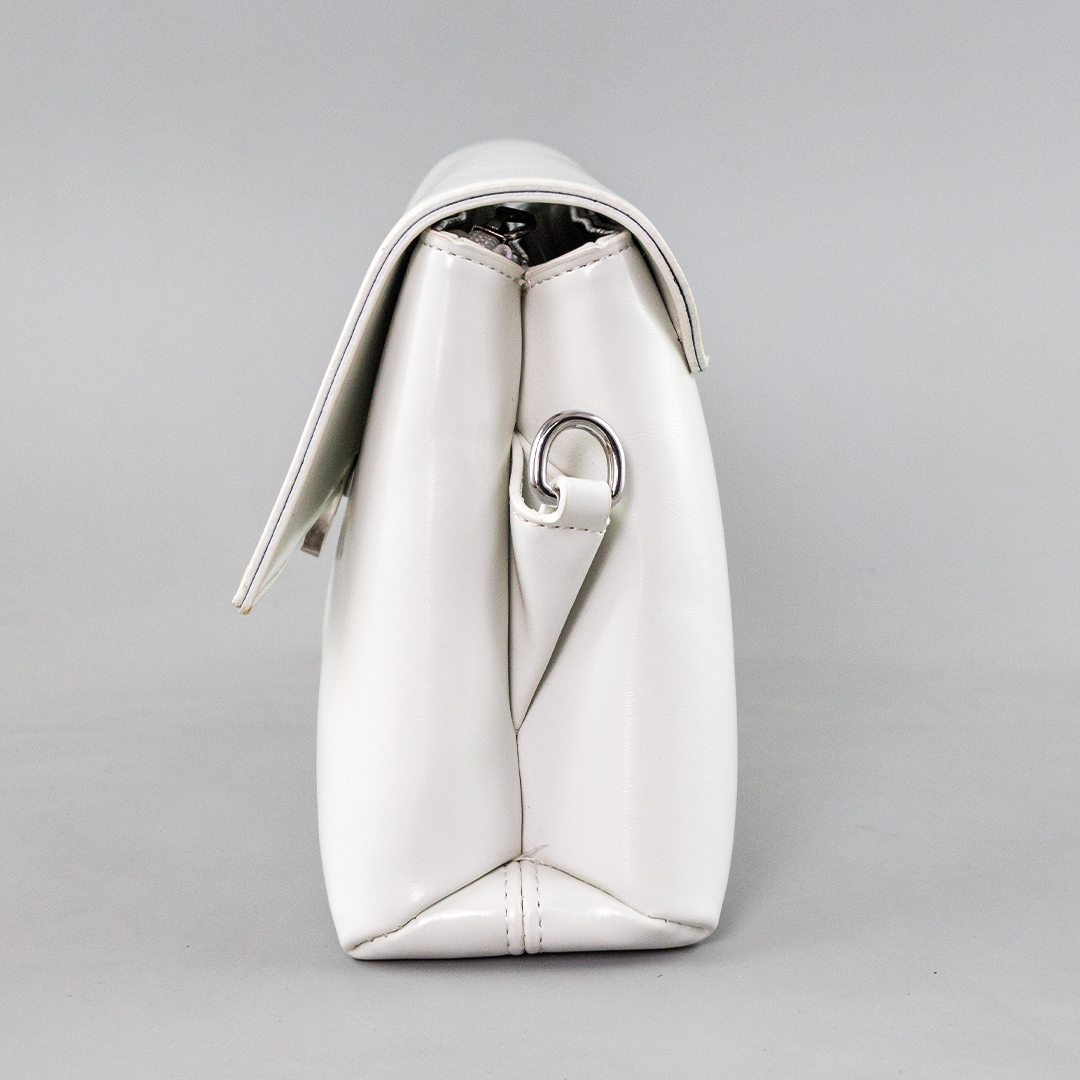 Колір: біла Матеріал: екошкіра, глянц Довжина:29 Ширина: 9 Висота: 18 Колір фурнітури: срібло Кількість відділень: 2 основних відділення Виробник: Китай