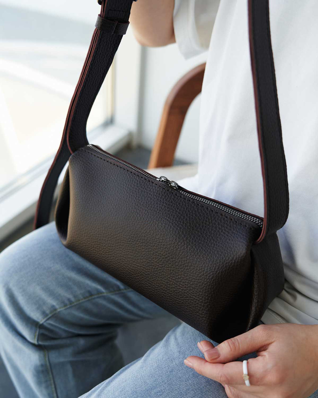 Сумка, яка буде невід'ємною частиною вашого щоденного гардеробу. Вона настільки зручна, що Ви не захочете з нею розлучатись. Сумка відкривається за допомогою застібки-блискавки. Усередині сумка без підкладки. Плечовий ремінь шириною 3 см. регулюється під різну довжину