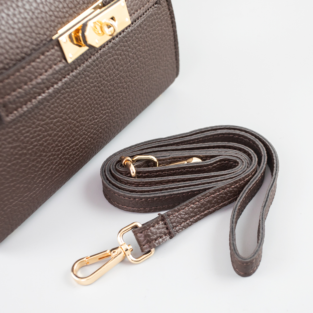Ця темно-коричнева сумка втілює у собі поєднання вишуканості та функціональності. Виготовлена з еко шкіри. Просторе основне відділення робить цю сумку ідеальним вибором для тих, хто цінує практичність та місткість. З таким аксесуаром ви підкреслите свою неповторність у будь-якій ситуації: в офісі, на переговорах, на прогулянці. Сумка закривається клапаном із стильною застібкою-замочком. Дизайн сумки відноситься до "тривалих" трендів і буде актуальним не один рік.