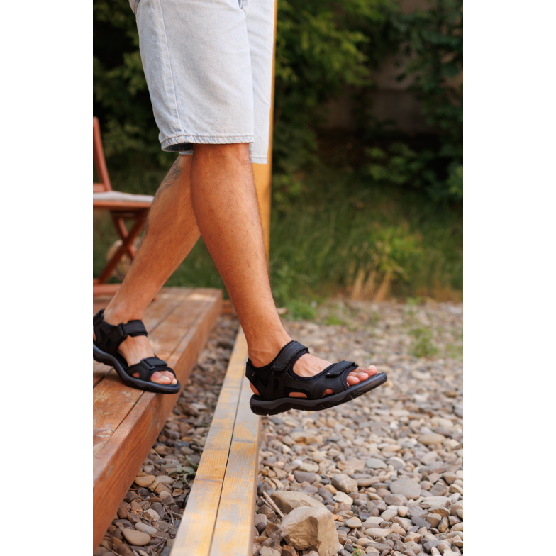 Відкрийте для себе безмежний комфорт та елегантність з нашими чоловічими сандаліями в універсальному чорному кольорі. Ці сандалі - втілення легкості та стилю, ідеальний вибір для сучасного чоловіка, який цінує комфорт та стиль.