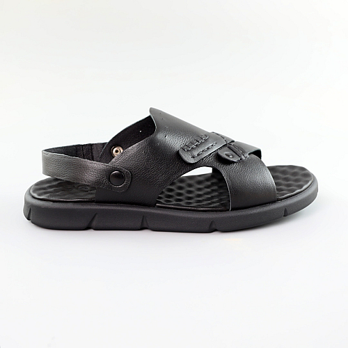 Відкрийте для себе безмежний комфорт та елегантність з нашими чоловічими сандаліями, виготовленими з високоякісної натуральної шкіри у чорному кольорі. Ці сандалі - втілення легкості та стилю, ідеальний вибір для сучасного чоловіка, який цінує комфорт та стиль.