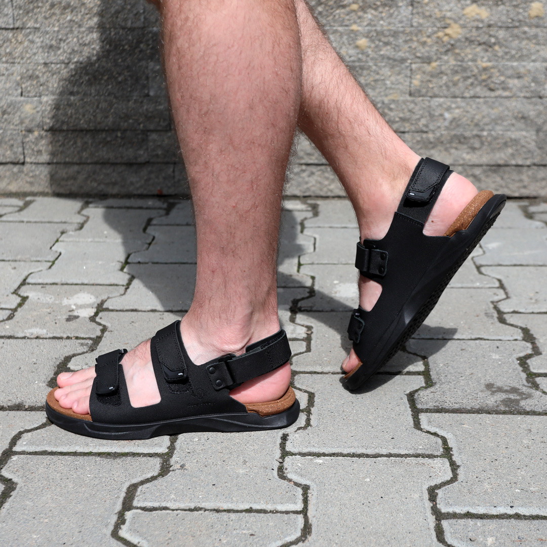 Відкрийте для себе безмежний комфорт та елегантність з нашими чоловічими сандаліями, виготовленими з високоякісної натуральної прорезиненої шкіри у чорному кольорі. Ці сандалі - втілення легкості та стилю, ідеальний вибір для сучасного чоловіка, який цінує комфорт та стиль.