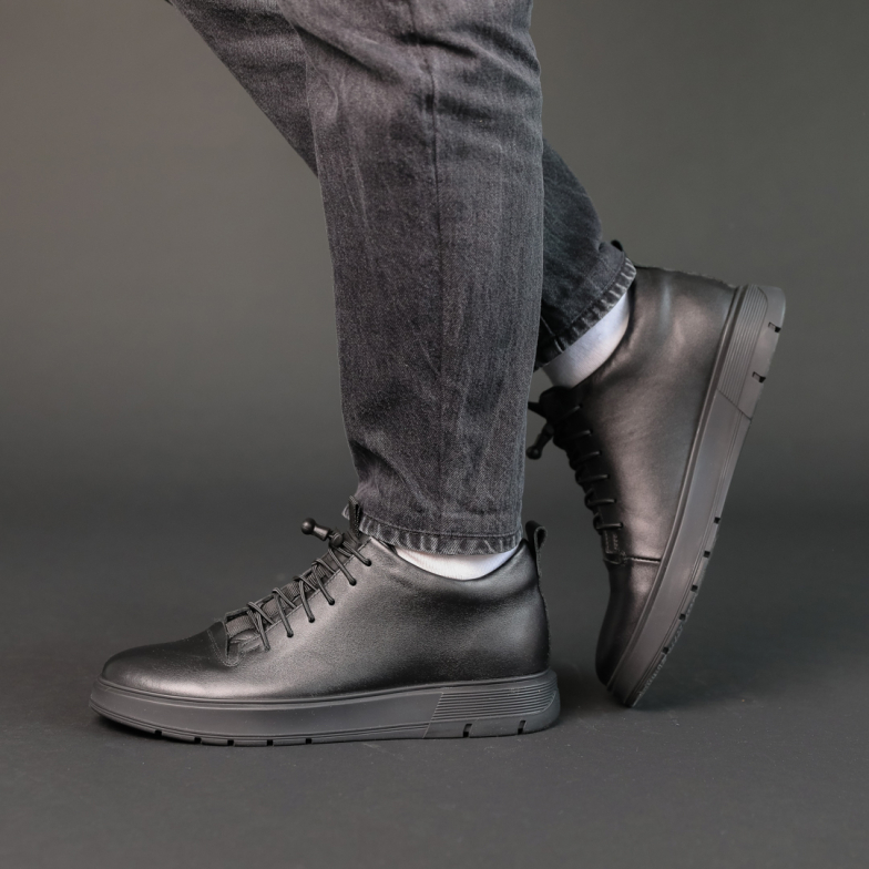Стильні чоловічі черевики в чорному кольорі - це втілення зручності та сучасності в одному взутті. Ця пара не лише надасть вашому образу неперевершеного вигляду, але й забезпечить зручність протягом усього дня. Виготовлені з натуральної преміальної шкіри, тому гарантують тривалість та надійність. Утеплені байкою - Ваші ноги завжди будуть в теплі та комфорті. Зносостійка поліуретанова підошва додає стильного акценту даній парі. Ці черевики є відмінним вибором для чоловіків, які цінують якість і стиль у взутті. Вони підходять для повсякденного використання, завдяки чому стають незамінною частиною гардеробу сучасного чоловіка.