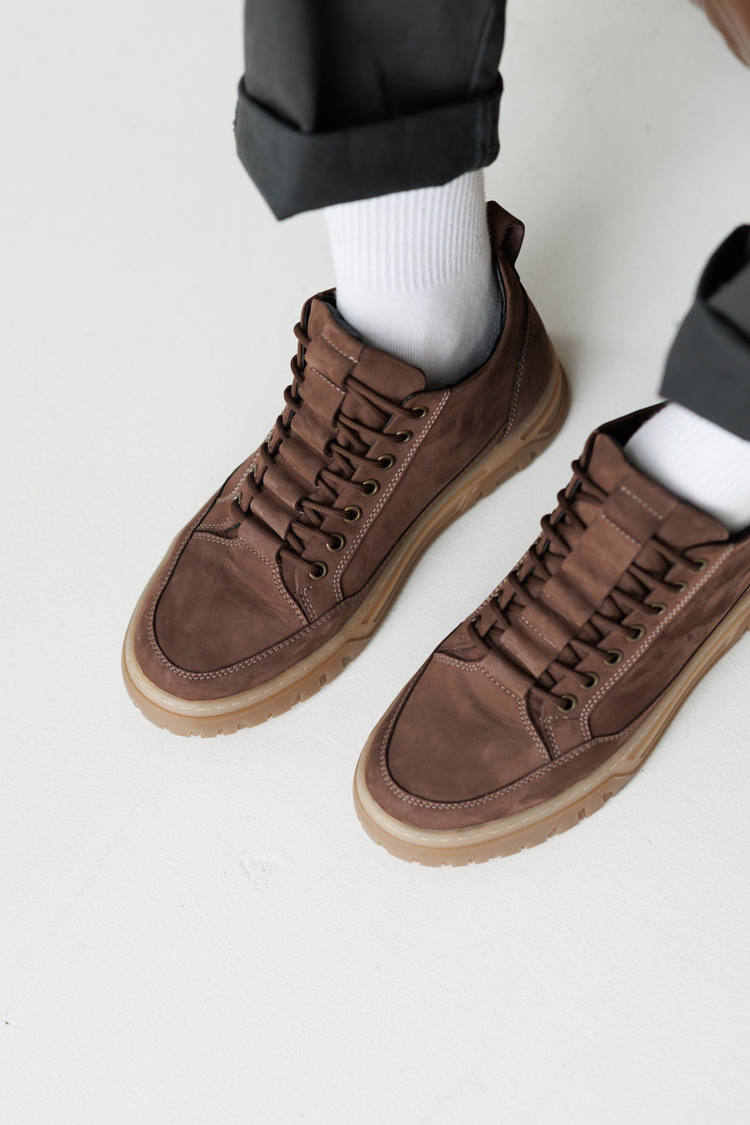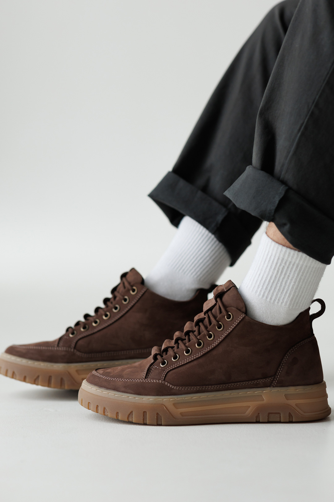 Пропонуємо комфортні чоловічі черевики у шоколадному кольорі. Ця пара вражає своїм универсальним та стильним дизайном. Натуральний нубук надає парі елегантного вигляду, а використання внутрішньої підкладки з хутра та утепленої устілки забезпечує комфорт та максимальну зручність та тепло протягом усього дня. Це довговічні моделі на стійкій підошві.