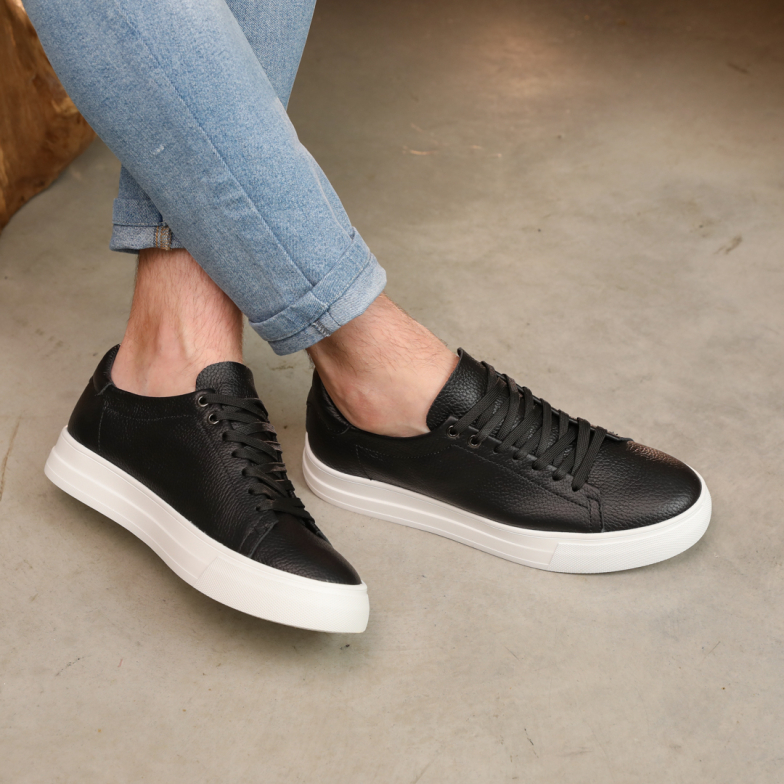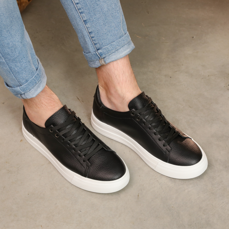 Чоловічі чорні кеди 585615 з нової колекції - це втілення класичного виконання спортивного взуття. Пара виготовлена з натуральної преміальної шкіри. Всередині без підкладки, дуже м'які, комфортно відчуваються на ніжках, устілка шкіряна, просиліконена. Підошва - EVA, гнучка та зносостійка. Кеди дуже легкі, вага півпарку всього 280 грам. Лаконічний дизайн без зайвих деталей робить їх елегантними. Мінімалістична шнурівка і підошва середньої висоти доповнюють образ. Декоративну роль виконує поєднання чорної основи з контрастними білосніжними елементами. У такій стильній моделі вам забезпечений комфорт і ексклюзивний зовнішній вигляд. Поєднуйте ці кеди зі штанами різного крою, одягом з деніму, напівформальними костюмами для офісу.
