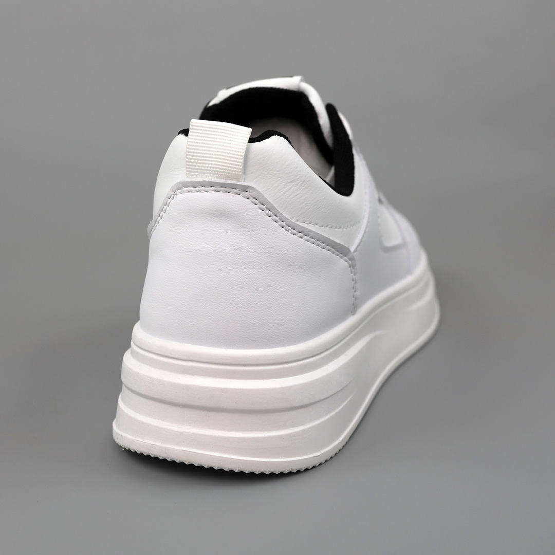 Стильні кеди в універсальному білому кольорі, виконані з екошкіри. Внутрішня підкладка з текстилю, устілка - меморі, додає комфорту під час ходіння. Підошва - EVA, забезпечує зручність в експлуатації, чудову амортизацію та надійне зчеплення. Завершує унікальний класичний дизайн для такої моделі круглий мис. Такі кеди будуть доречні для побудови модних образів для міжсезоння у молодіжному та повсякденному напрямках.