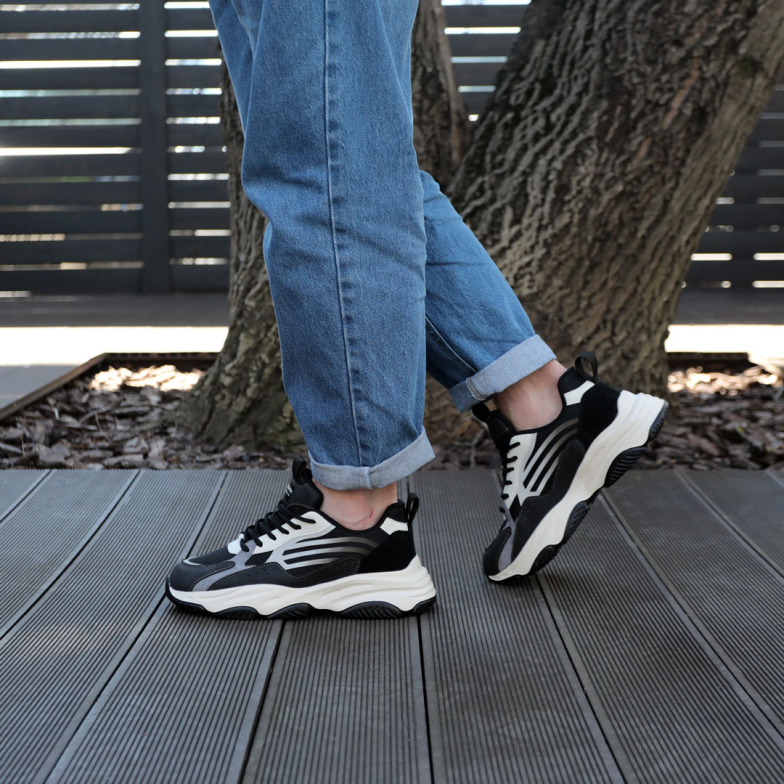 Ласкаво просимо до світу неперевершеного стилю і комфорту з нашими чоловічими весняними кросівками у чорному базовому кольорі. Ця пара вражає не лише своїм базовим та стильним дизайном, але й високоякісним виконанням з використанням екошкіри, замші преміум класу та текстилю.