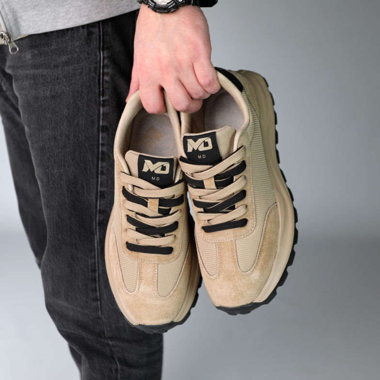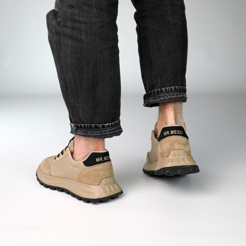Ласкаво просимо до світу неперевершеного стилю і комфорту з нашими чоловічими кросівками у бежевому кольорі. Ця пара вражає не лише своїм базовим та стильним дизайном, але й високоякісним виконанням з використанням екозамші та текстилю.
