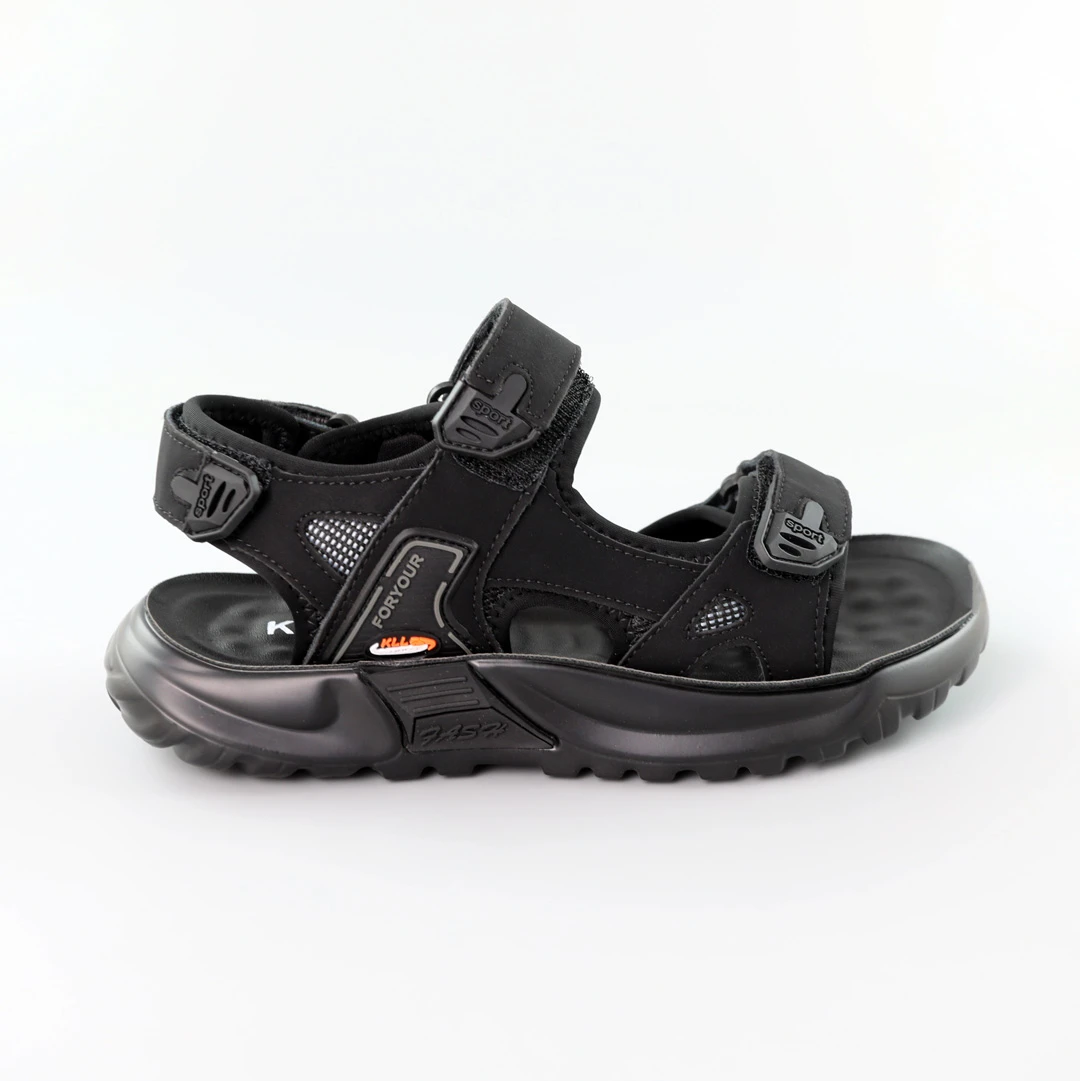 Відкрийте для себе безмежний комфорт з нашими дитячими сандаліями, виготовленими з високоякісної екошкіри у чорному кольорі. Ці сандалі - втілення легкості та стилю, ідеальний вибір для сучасних дітей.