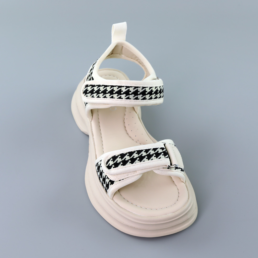 Відкрийте для себе безмежний комфорт з нашими дитячими сандаліями, виготовленими з високоякісного текстилю у бежево-чорному кольорі. Ці сандалі - втілення легкості та стилю, ідеальний вибір для сучасних дітей.