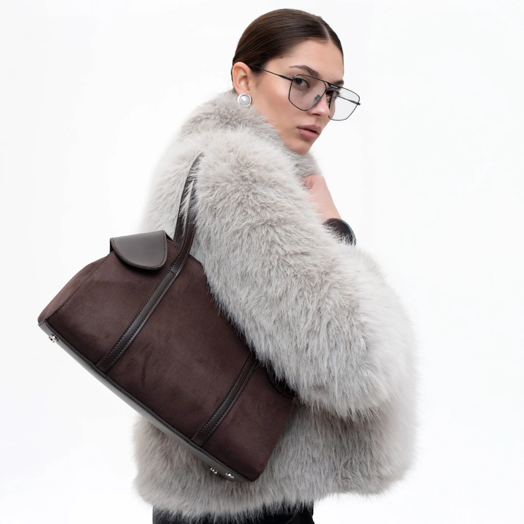 Сумка женская замша в сочетании с эко кожей 593868 Шоколадная