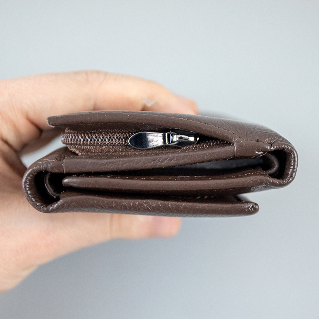 Кошелек на 1 основное отделение с перегородками и отделение для монет, которое закрывается на молнию, несколько отделений для кредитных карт, есть закрывающееся на застежке отделение. Кошелек мягкий и приятный на ощупь.