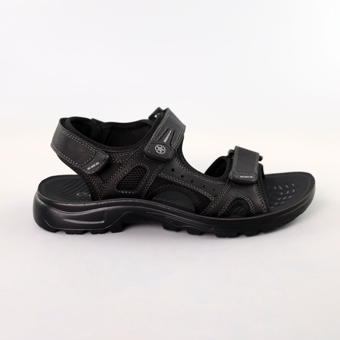 Откройте для себя безграничный комфорт и элегантность с нашими мужскими сандалиями в универсальном черном цвете . Эти сандалии – воплощение легкости и стиля, идеальный выбор для современного мужчины, который ценит комфорт и стиль.