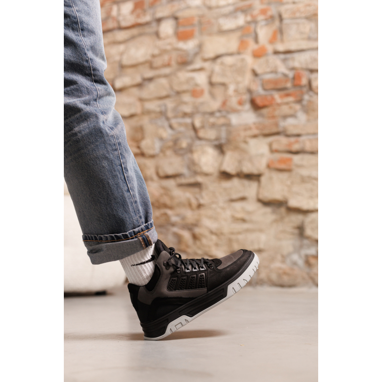Стильные мужские кожаные кеды в черном и сером цвете – это воплощение элегантности и современности в одной обуви. Эта пара не только придаст вашему образу непревзойденный вид, но и обеспечит удобство в течение всего дня. Изготовлены из высококачественной кожи, поэтому гарантируют длительность и надежность. Внутренняя подкладка утеплена. Из носостойкой подошвы придает стильный акцент данной паре. Эти кеды являются отличным выбором для мужчин, ценящих качество и стиль в обуви. Они подходят как для официальных мер, так и для повседневного использования, благодаря чему становятся незаменимой частью гардероба современного мужчины.
