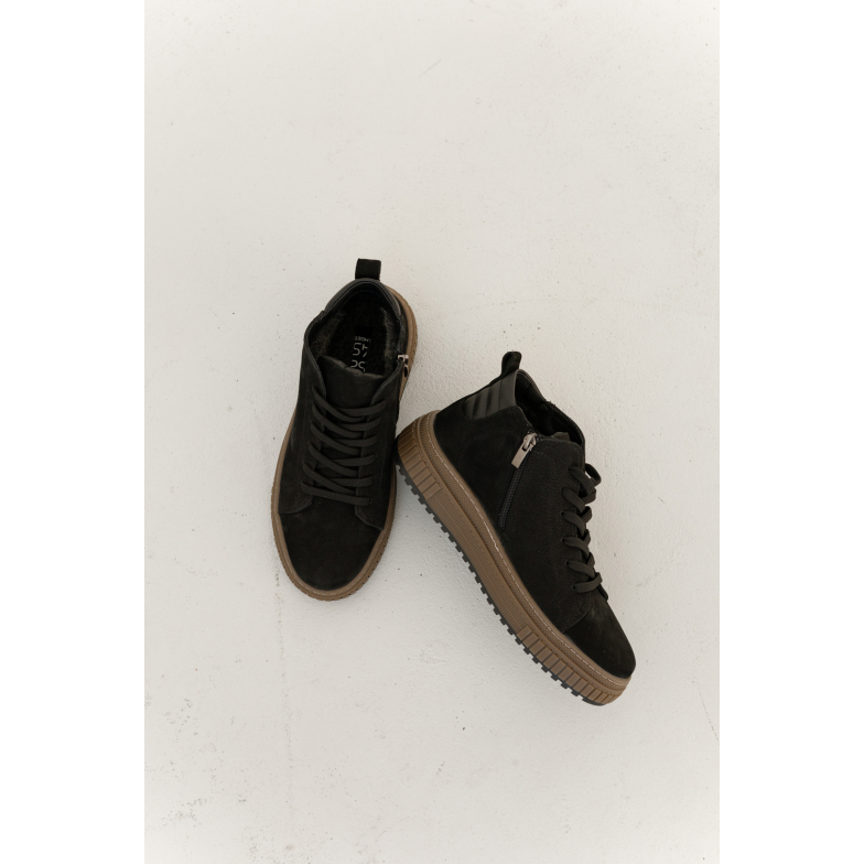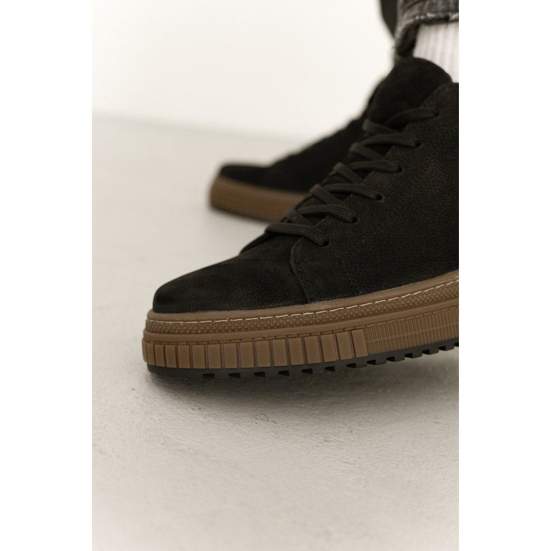 Стильные мужские замшевые кеды в черном цвете – это воплощение элегантности и современности в одной обуви. Эта пара не только придаст вашему образу непревзойденный вид, но и обеспечит удобство в течение всего дня. Изготовлены из высококачественного натурального нубука, поэтому гарантируют длительность и надежность. Внутренняя подкладка утеплена. Из носостойкой подошвы придает стильный акцент данной паре. Эти кеды являются отличным выбором для мужчин, которые ценят качество и стиль обуви. Они подходят как для официальных мер, так и для повседневного использования, благодаря чему становятся незаменимой частью гардероба современного мужчины.