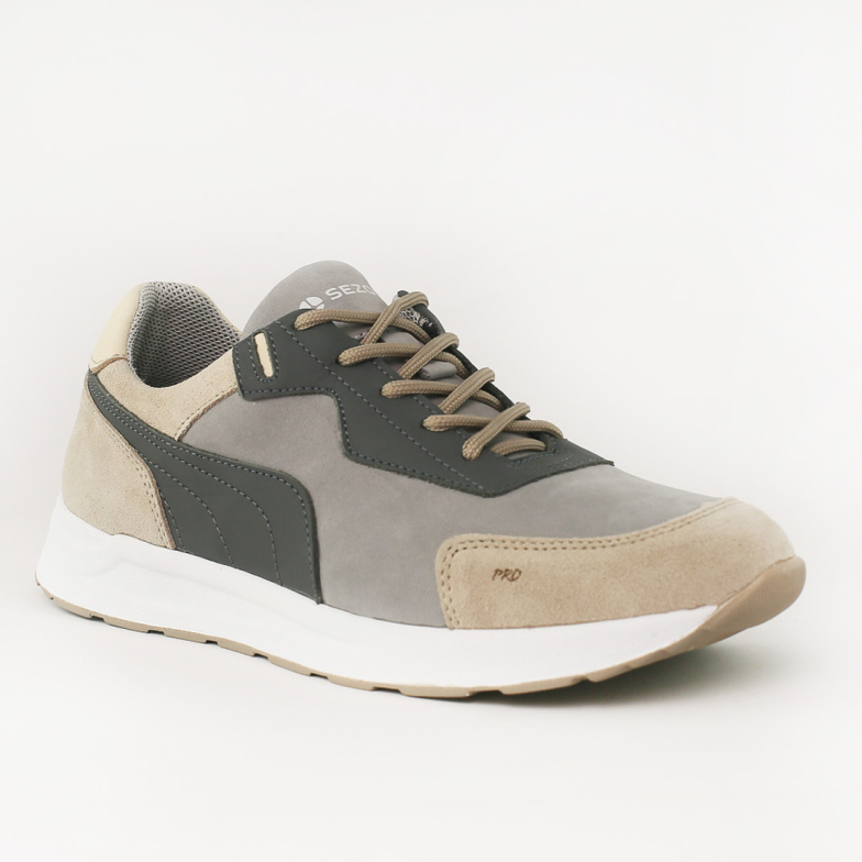 Добро пожаловать в мир утонченности и комфорта с нашими мужскими кроссовками в серо-бежевом цвете на белой подошве. Эта пара поражает не только своим базовым и стильным дизайном, но и качественным исполнением с использованием натуральной кожи и нубука.