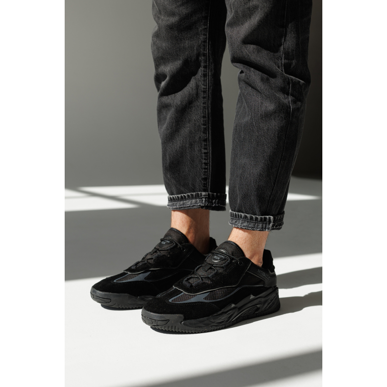 Добро пожаловать в мир непревзойденного стиля и комфорта с нашими мужскими кроссовками в черном цвете. Эта пара поражает не только своим базовым и стильным дизайном, но и высококачественным исполнением с использованием влажности текстиля и замши.