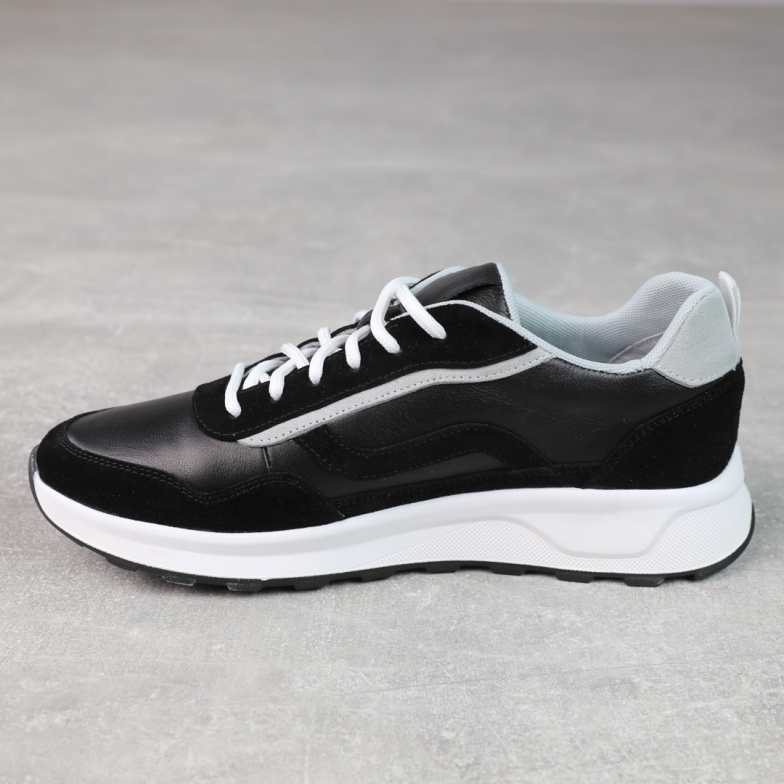 Добро пожаловать в мир изысканности и комфорта с нашими мужскими кроссовками в черном цвете. Эта пара поражает не только своим базовым и стильным дизайном, но и качественным исполнением с использованием натуральной кожи и замши.