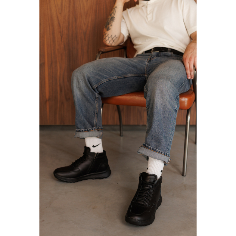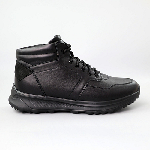 Кроссовки мужские в черном универсальном цвете изготовлены из натуральной кожи. Утепленная стелька, очень мягкая, делает кроссовки максимально комфортной и обеспечивает тепло в холодный период. Подошва полиуретановая, максимально долговечная. Кроссовки в черном цвете, отлично подойдут под любой стиль одежды. Кроссовки можно носить в любую погоду, ведь им не страшны ни дождь, ни снег, ни слякоть. Максимально просты в уходе, достаточно протереть влажной салфеткой.
