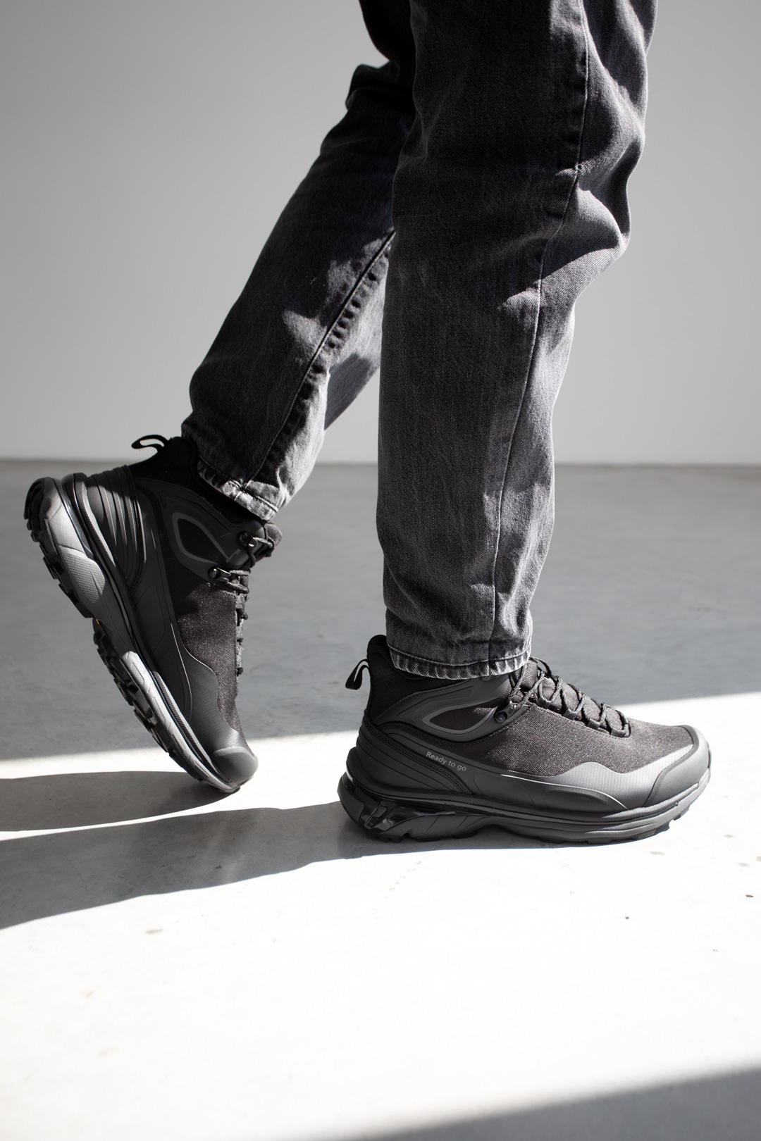 Стильные мужские термо кроссовки в черном универсальном цвете обладают водонепроницаемыми и дышащими свойствами. Водонепроницаемое покрытие HUMMTO-TEX в сочетании с влагоотталкивающей тканью имеет непрерывные динамические водоотталкивающие, влагоотталкивающие и дышащие функции на верхней части. Ваша обувь защищает Ваши ноги от дождя, снега и других атмосферных осадков, позволяя при этом "дышать" - пропускать водяной пар изнутри, что важно для комфорта. Ваши ноги всегда будут сухими, поэтому обувь прекрасно подойдет на влажную погоду, на осень, зиму и раннюю весну. Кроссовки максимально универсальны и практичны, а также просты в уходе, поэтому прекрасно подойдут на каждый день.