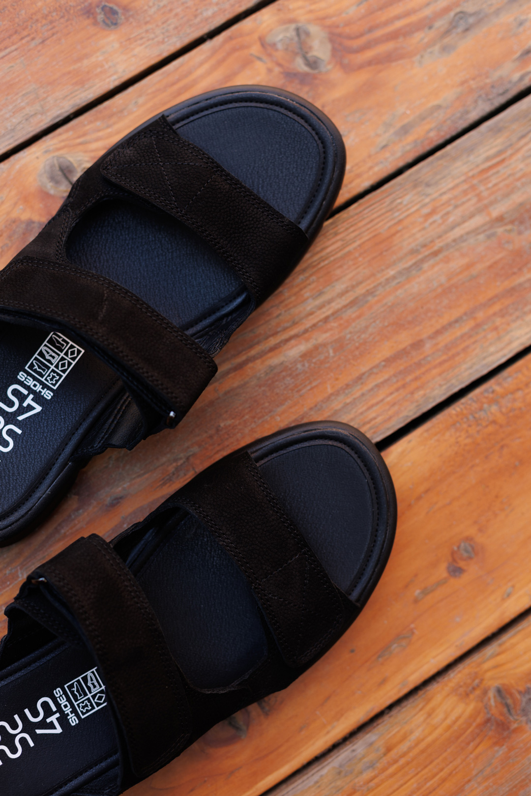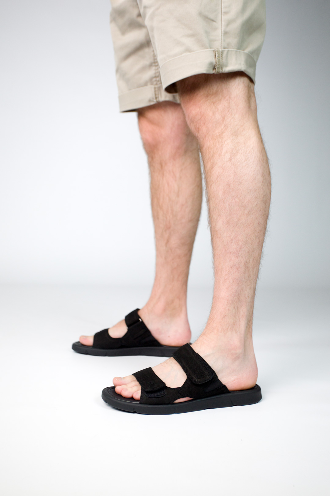 Откройте для себя безграничный комфорт и элегантность с нашими мужскими шлепанцами, изготовленными из высококачественного натурального нубука в классическом черном цвете.