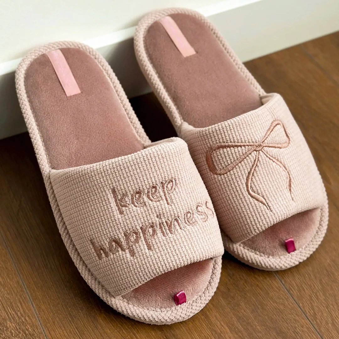 Тапочки домашние женские с вышивкой и аппликацией в виде розовой бантики – нежный акцент для вашего домашнего образа.
