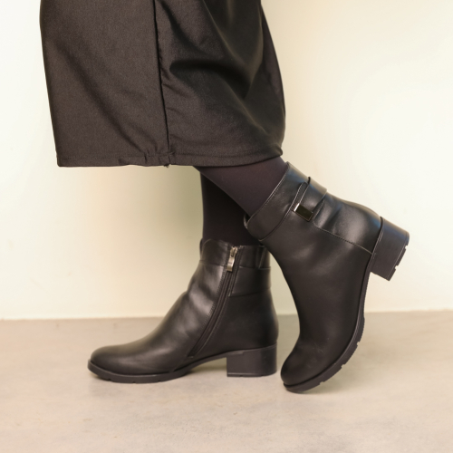 Ботинки кожаные с мехом 587050 Черные распродажа