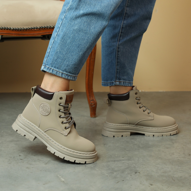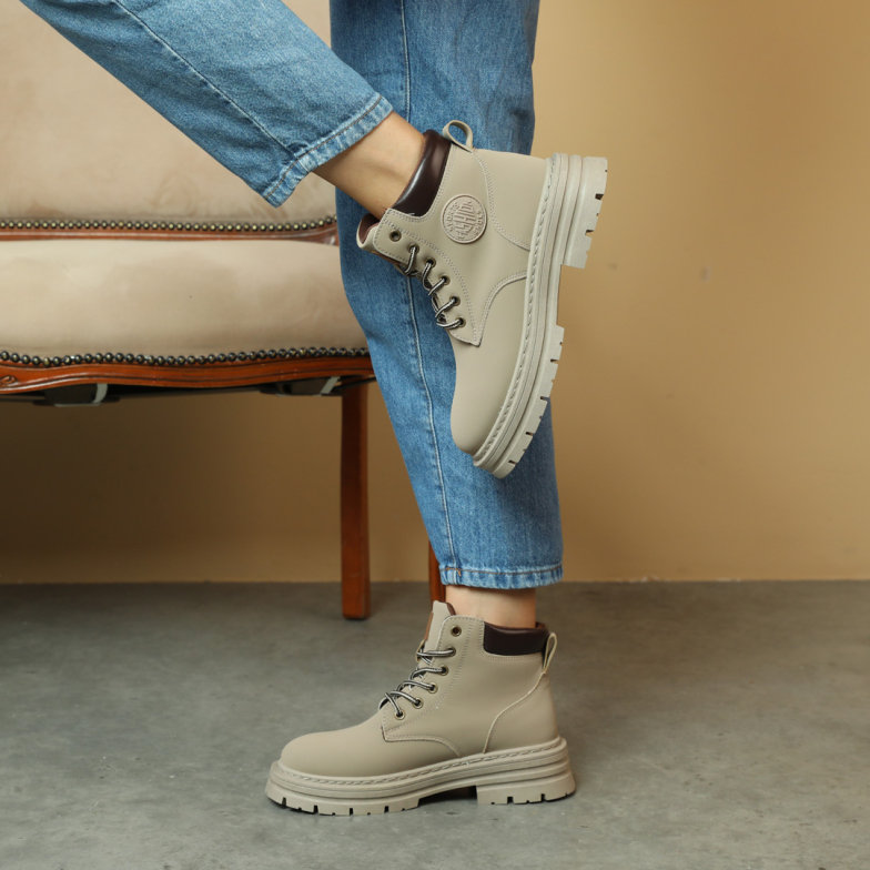 Универсальная модель женских ботинок в сером цвете поражает своим стильным видом. Эти ботинки изготовлены из экокожи, а внутренняя подкладка из текстиля доставляет им удовольствия на ощупь. Комфортная мемори стелька делает их особенно удобными для ног. Модель выполнена на шнуровках, что упрощает процесс обувания. Эти ботинки отлично подойдут под любой образ, придавая ему стильный акцент.