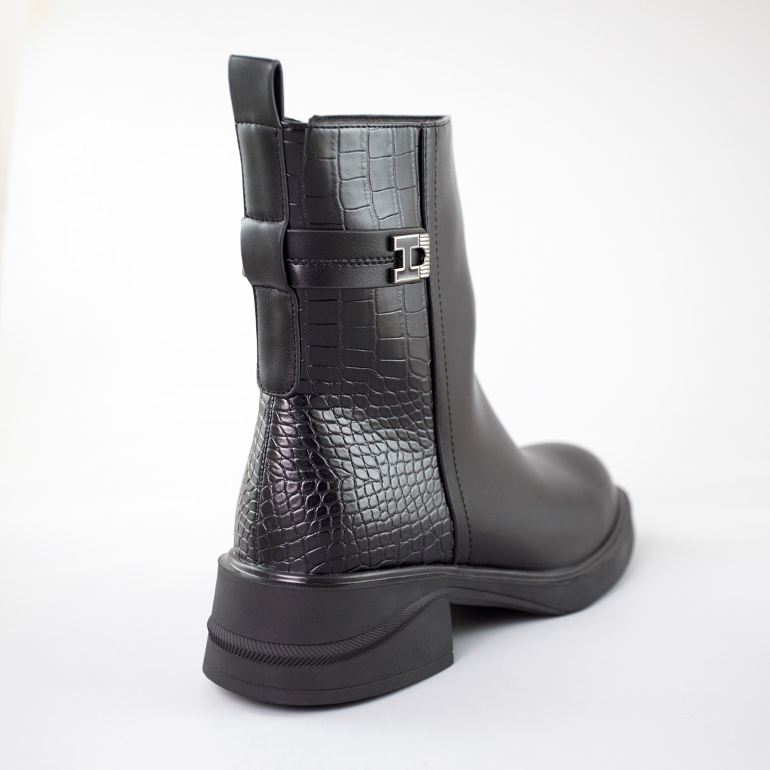 Эти черные ботинки изготовлены из экокожи, что делает их даже более привлекательными, поскольку этот материал качественный и легкий в уходе. Они смотрятся идеально и подчеркивают ваш стиль и вкус. Но главное преимущество этих ботинок – это их внутреннее утепление из басни. Они станут самыми лучшими союзниками в осенний период, предоставляя вам тепло и комфорт. Эта пара в черном цвете легко смешивается и отлично подойдет на каждый день.