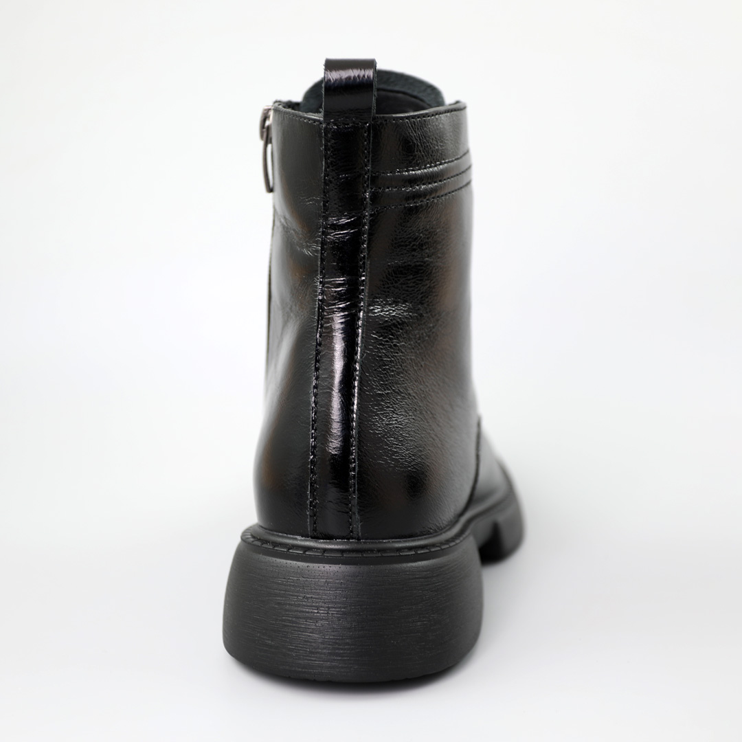Приглашаем вас ознакомиться с нашими женскими ботинками в черном цвете, изготовленными из высококачественной лаковой кожи. Эта изысканная пара станет отличным выбором для модных дам, ценящих комфорт и стиль.