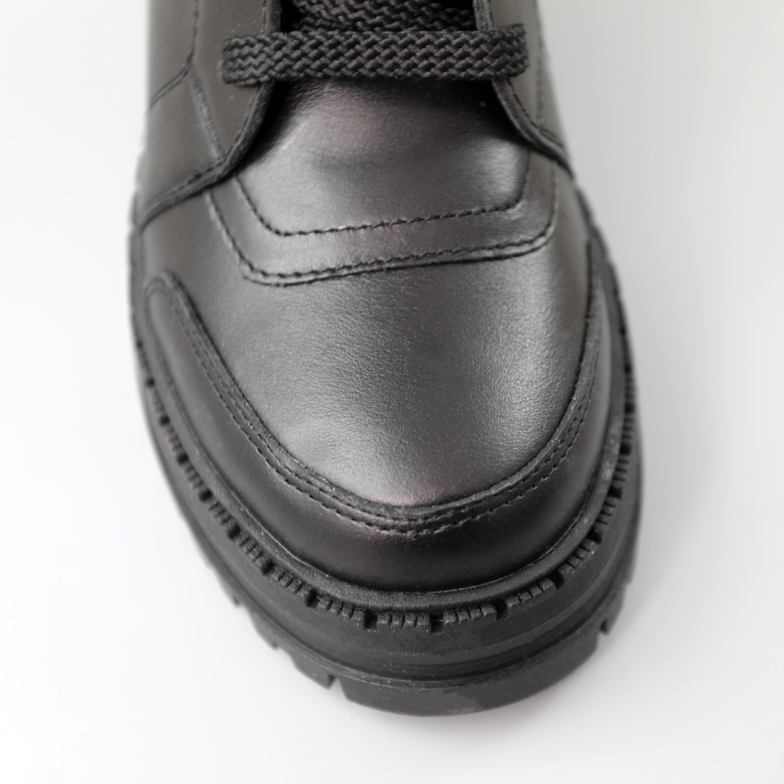 Ботинки изготовлены из натуральной кожи, что делает их даже более привлекательными, поскольку этот материал качественный. Они смотрятся идеально и подчеркивают ваш стиль и вкус. Но главное преимущество этих ботинок – это их внутреннее утепление из натурального меха. Они станут самыми лучшими союзниками в зимний период, предоставляя вам тепло и комфорт. Эта пара в черном цвете легко смешивается и отлично подойдет на каждый день.