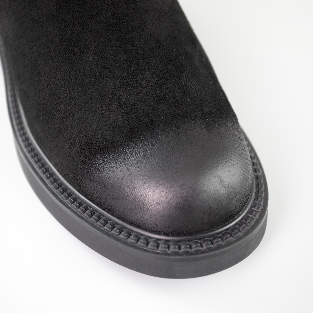 Эти черные ботинки изготовлены из натуральной замши, что делает их даже более привлекательными, поскольку этот материал качественный и легкий в уходе. Они смотрятся идеально и подчеркивают ваш стиль и вкус. Но главное преимущество этих ботинок – это их внутреннее утепление из байки. Они станут самыми лучшими союзниками в осенний период, предоставляя вам тепло и комфорт. Эта пара в черном цвете легко смешивается и отлично подойдет на каждый день.