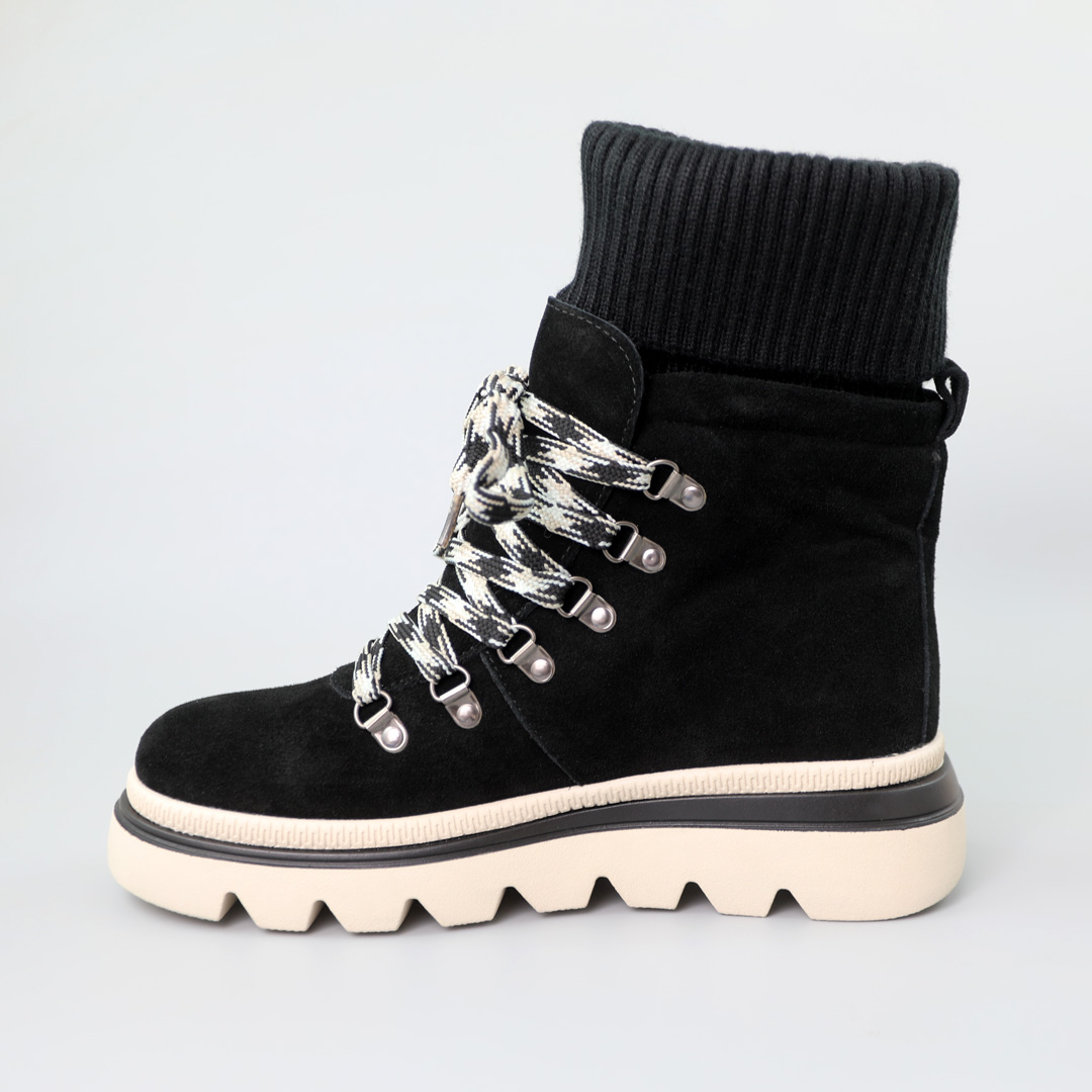 Ботинки изготовлены из натуральной замши, что делает их даже более привлекательными, поскольку этот материал качественный. Они смотрятся идеально и подчеркивают ваш стиль и вкус. Но главное преимущество этих ботинок – это их внутреннее утепление из экомеха. Они станут самыми лучшими союзниками в зимний период, предоставляя вам тепло и комфорт. Эта пара в черном цвете легко смешивается и отлично подойдет на каждый день.