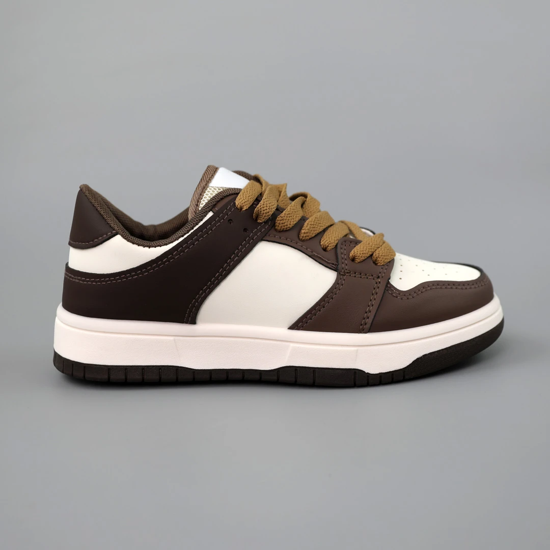 Предлагаем вам женские кроссовки в бело-коричневом цвете, отличающиеся актуальным дизайном и высокой комфортностью. Эта стильная пара изготовлена из качественной экокожи, что придает ей элегантность и обеспечивает практичность.