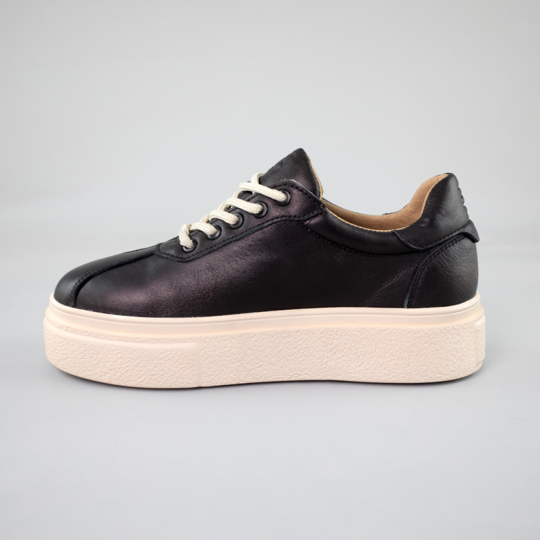 Предлагаем вам женские кеды в черном цвете максимально актуальные и комфортные. Эта стильная пара изготовлена из качественной натуральной кожи, что придает ей элегантность и обеспечивает долговечность. Внутри вас приятно удивит подкладка из кожи, которая придает комфорт при ношении. Кожаная стелька обеспечивает дополнительную поддержку и обеспечивает мягкость во время каждого шага. Пара легкая, что делает их идеальным вариантом для длительных прогулок.