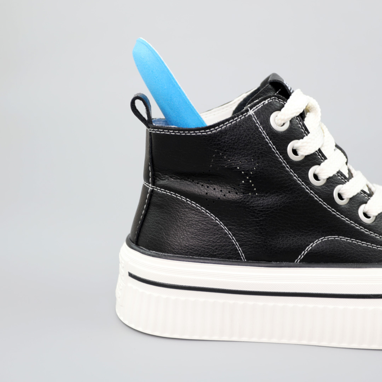 Черный цвет всегда актуален и благодаря ему эти кеды станут ярким элементом в вашем образе, делая их привлекательными для разных событий и стилей. Натуральная кожа придает им не только стильный вид, но и высокую степень качества и длительности.
