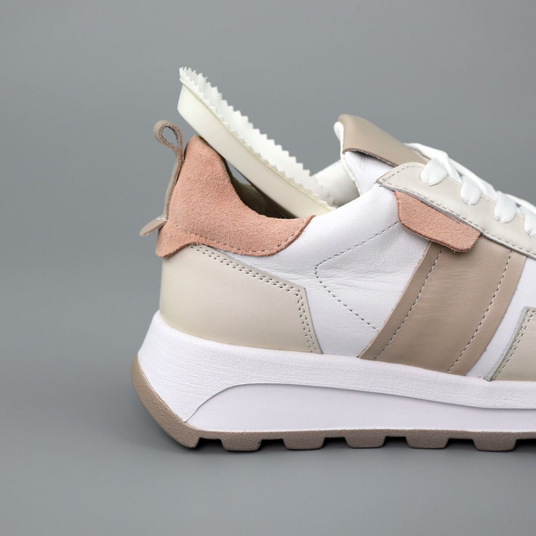 Бело-бежевое сочетание цветов придает этим кроссовкам классический и изящный вид, а натуральная кожа и замша придает им не только визуальную привлекательность, но и ощущение комфорта. Эта модель идеально подходит для тех, кто ценит элегантность и функциональность каждой детали образа.