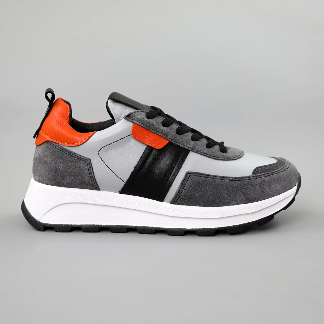 Серо-черное сочетание цветов придает этим кроссовкам классический и изящный вид, а натуральная замша и кожа придает им не только визуальную привлекательность, но и ощущение комфорта. Эта модель идеально подходит для тех, кто ценит элегантность и функциональность каждой детали образа.