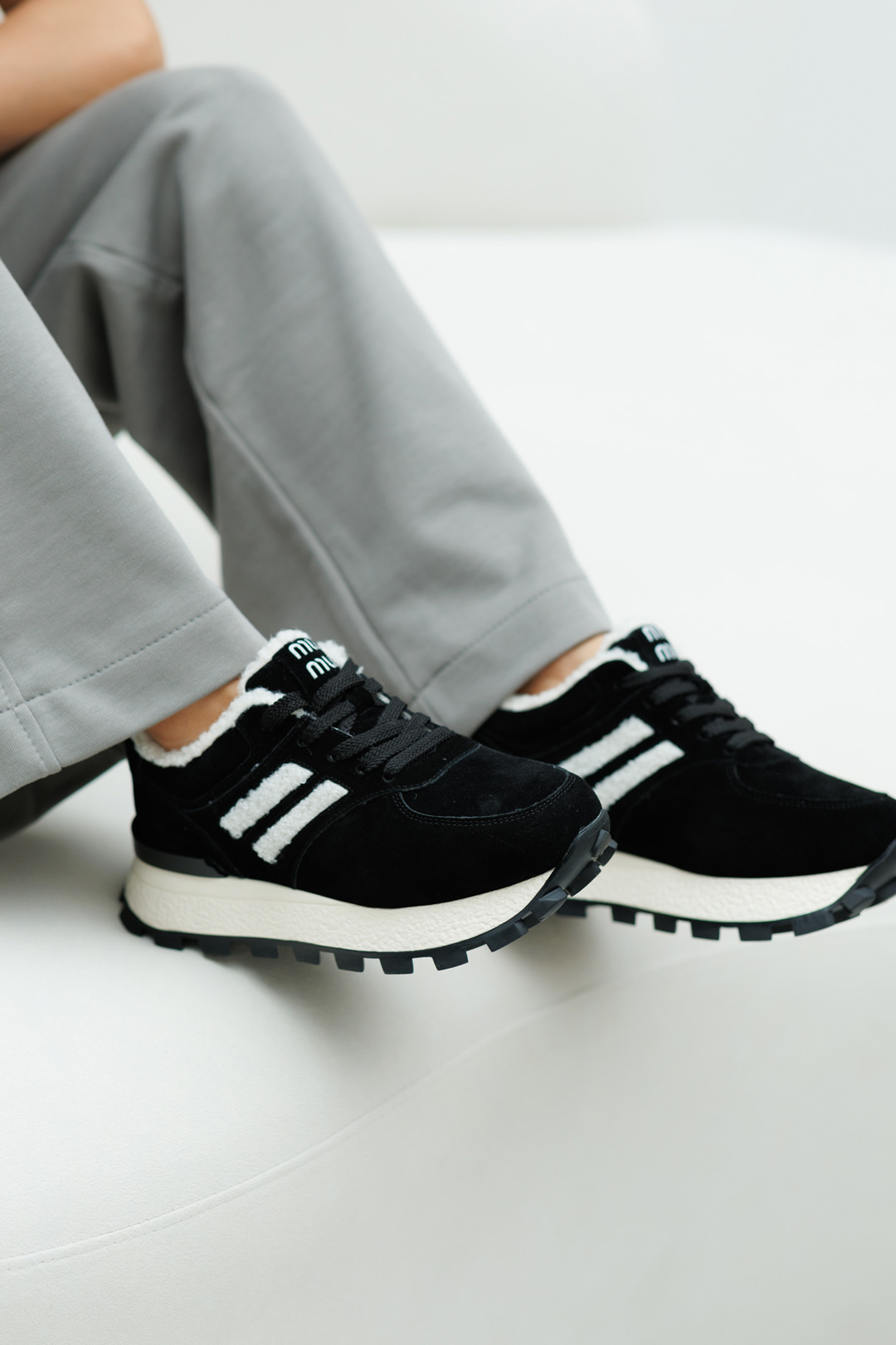 Зимняя модель женских кроссовок в черном цвете, на массивной подошве – поражает своим стильным видом.