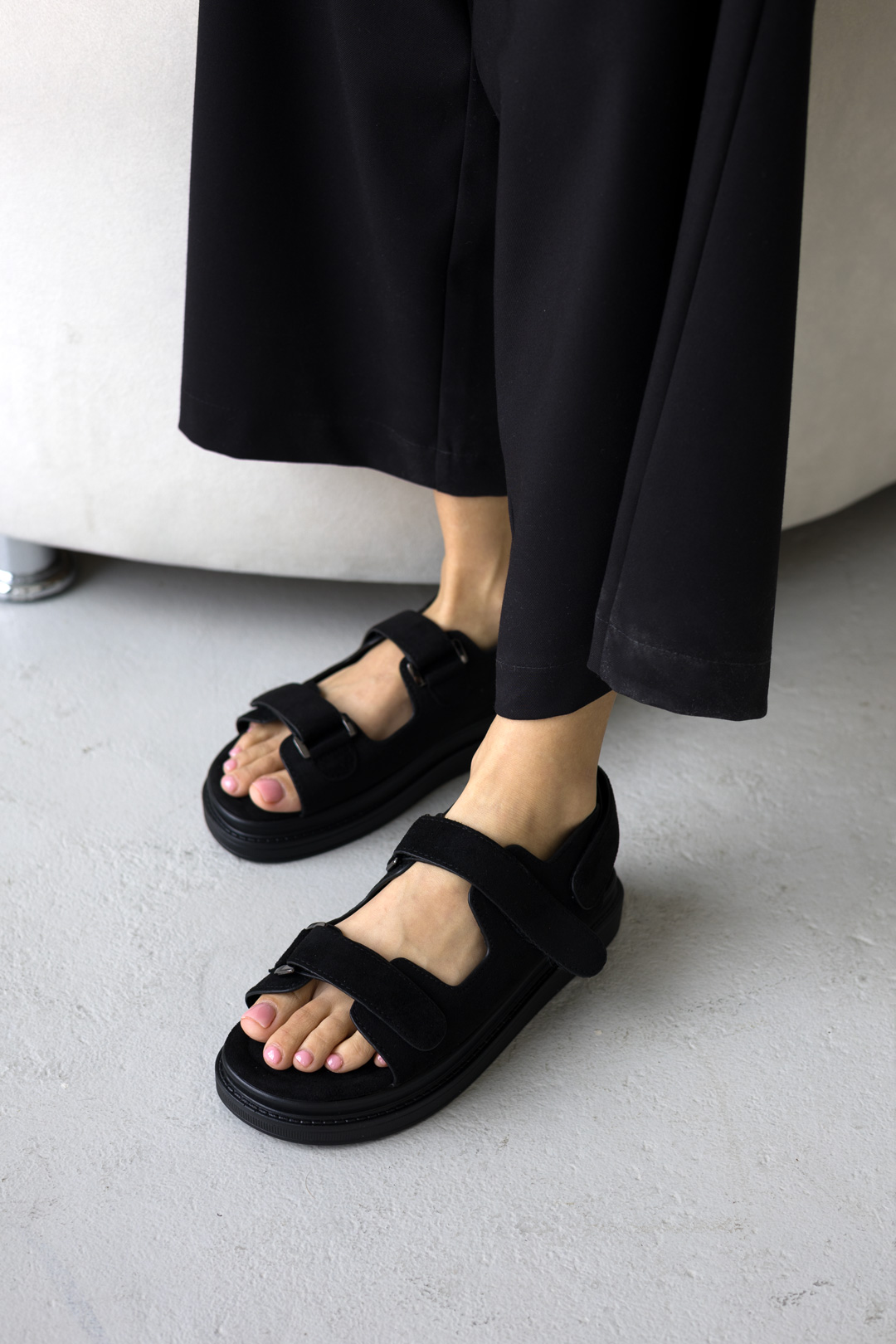 Выберите стиль и комфорт – выберите наши женские сандалии из экозамши в черном цвете, чтобы всегда выглядеть стильно и чувствовать себя комфортно в любой ситуации.