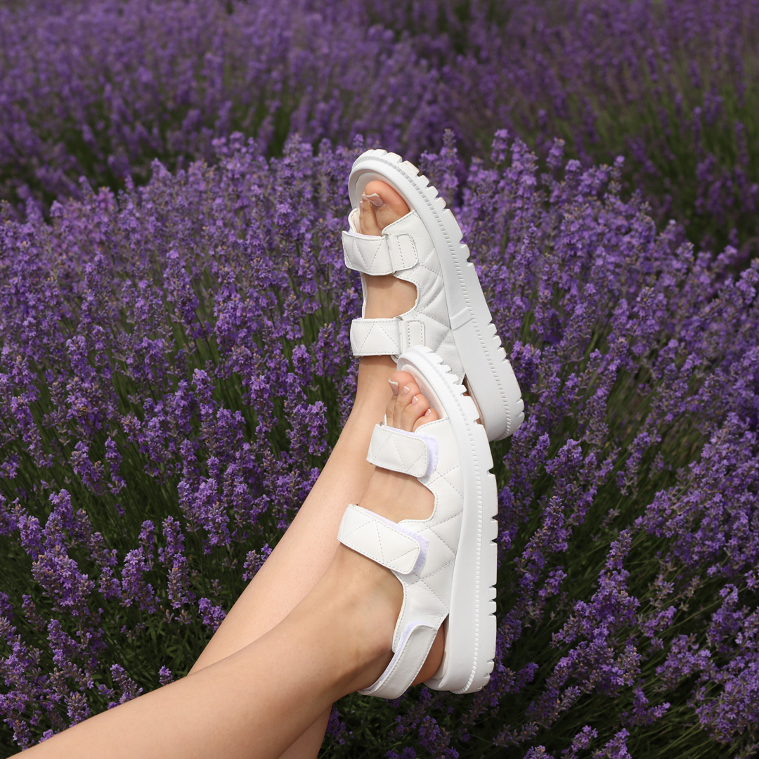 Актуальная и универсальная пара сандалий 586036 – именно то, что необходимо каждой стильной девушке для совершенного вида и непревзойденного комфорта. Пара изготовлена из натуральной кожи, что делает ее очень комфортной в носке, долговечной и прочной. Обувь дополнена креплением на липучках, обладает высокими практичными свойствами и является отличным решением для жарких летних дней. Универсальная белая окраска органически впишется в образы любых оттенков и придаст им женственность. Такие сандалии украсят летние аутфиты классического, романтического, кэжуала направлений.