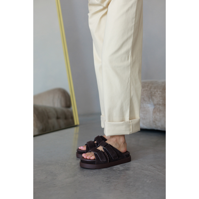 Выберите стиль и комфорт – выберите наши женские шлепанцы из натуральной замши в коричневом цвете, чтобы всегда выглядеть стильно и чувствовать себя комфортно в любой ситуации.