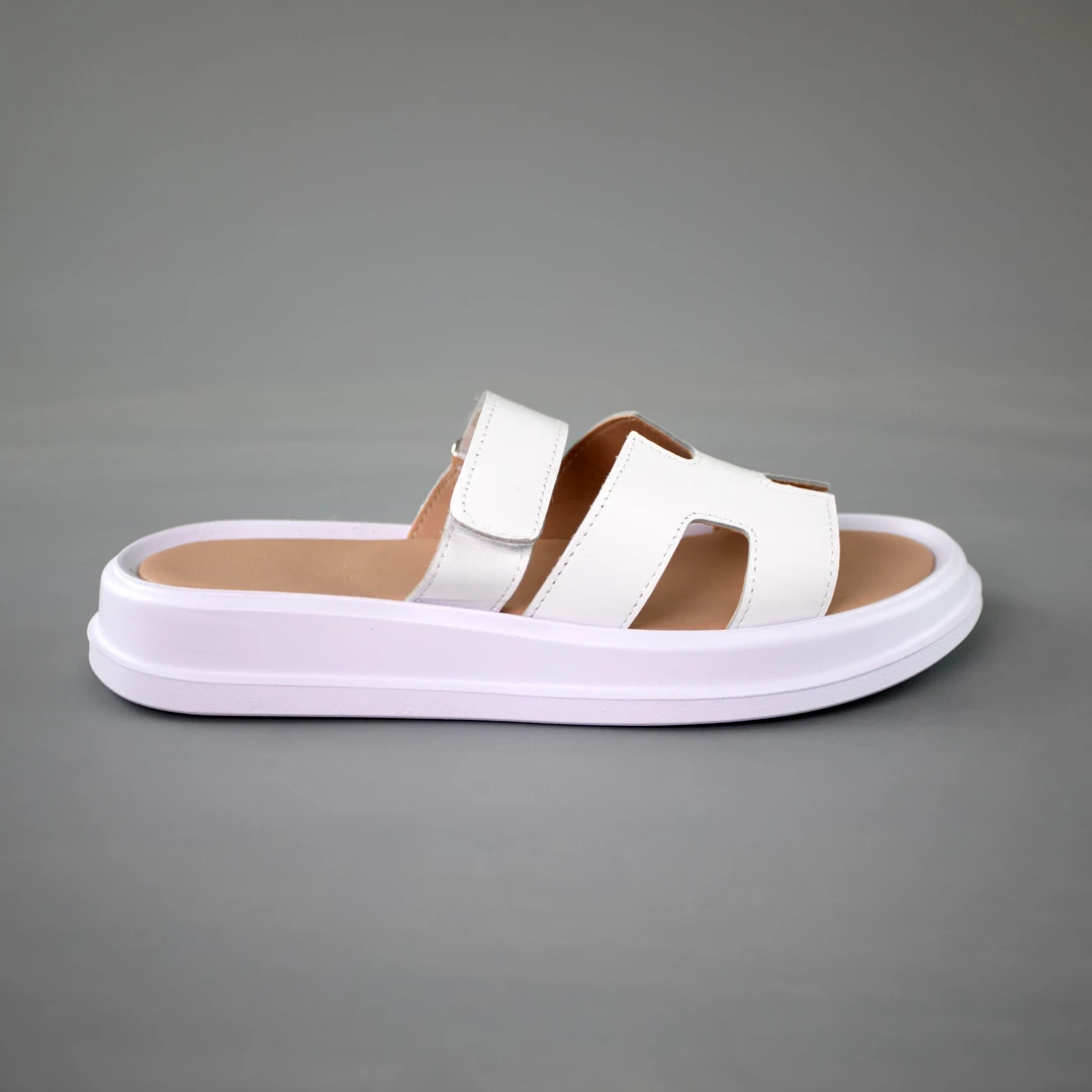 Актуальная и универсальная пара белых шлепанцев из экокожи – именно то, что необходимо каждой стильной девушке для совершенного вида и непревзойденного комфорта. Изделие обладает высокими практическими свойствами и является отличным решением для жарких летних дней. Стелька из экокожи, придает комфорт. Пара на ремешках, отлично фиксирующих ножки. Данная модель – это уникальное сочетание классики и модных трендов. Универсальная обувь, которая подойдет на всякий случай.
