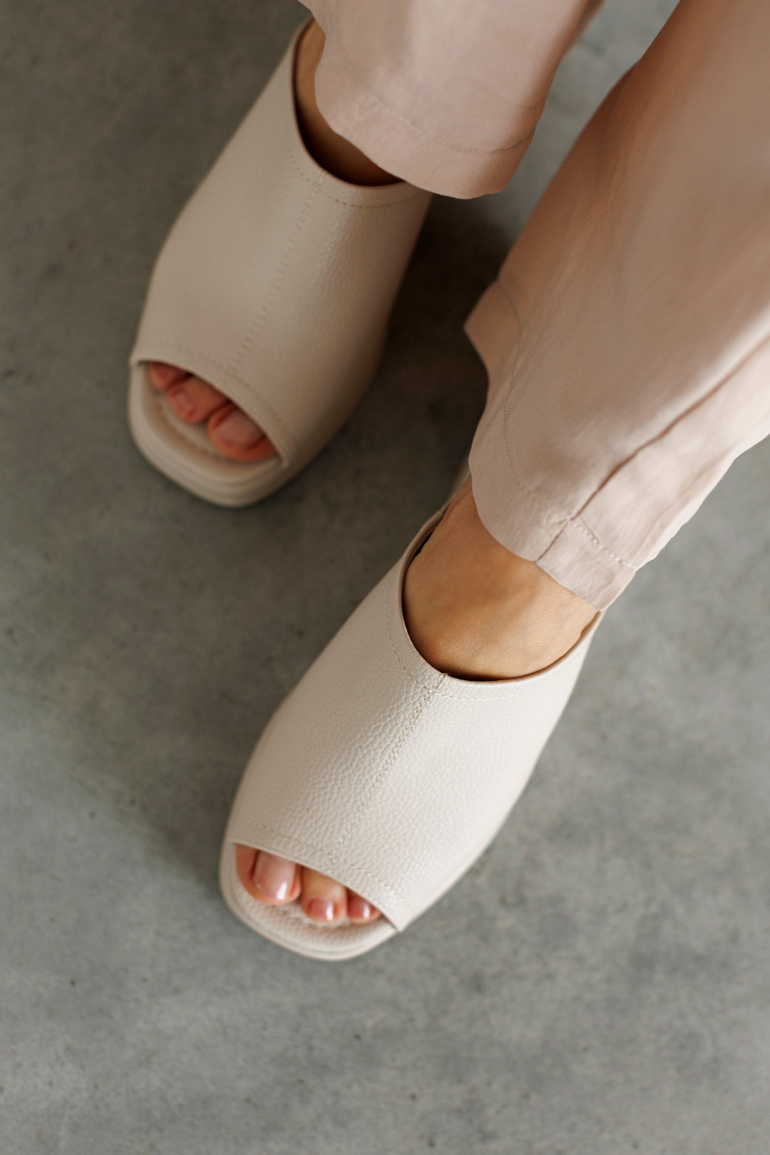 Выберите стиль и комфорт. Стильные бежевые женские шлепанцы на платформе – идеальный выбор для ежедневного комфорта и современного образа. Верх выполнен из качественного материала с приятной текстурой, что придает элегантности и износостойкости. Удобная высокая танкетка мягко поддерживает стопу, обеспечивая комфорт даже при длительном ношении. Лаконичный дизайн легко сочетается с любым гардеробом – от casual до более утонченных лугов. Прекрасный вариант для активных дней, когда важны и стиль, и удобство.