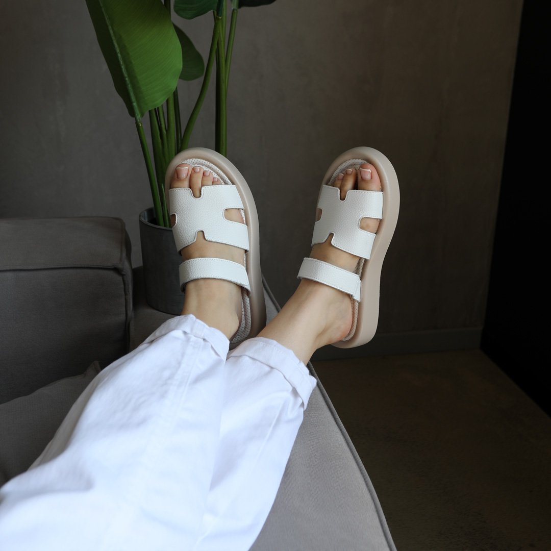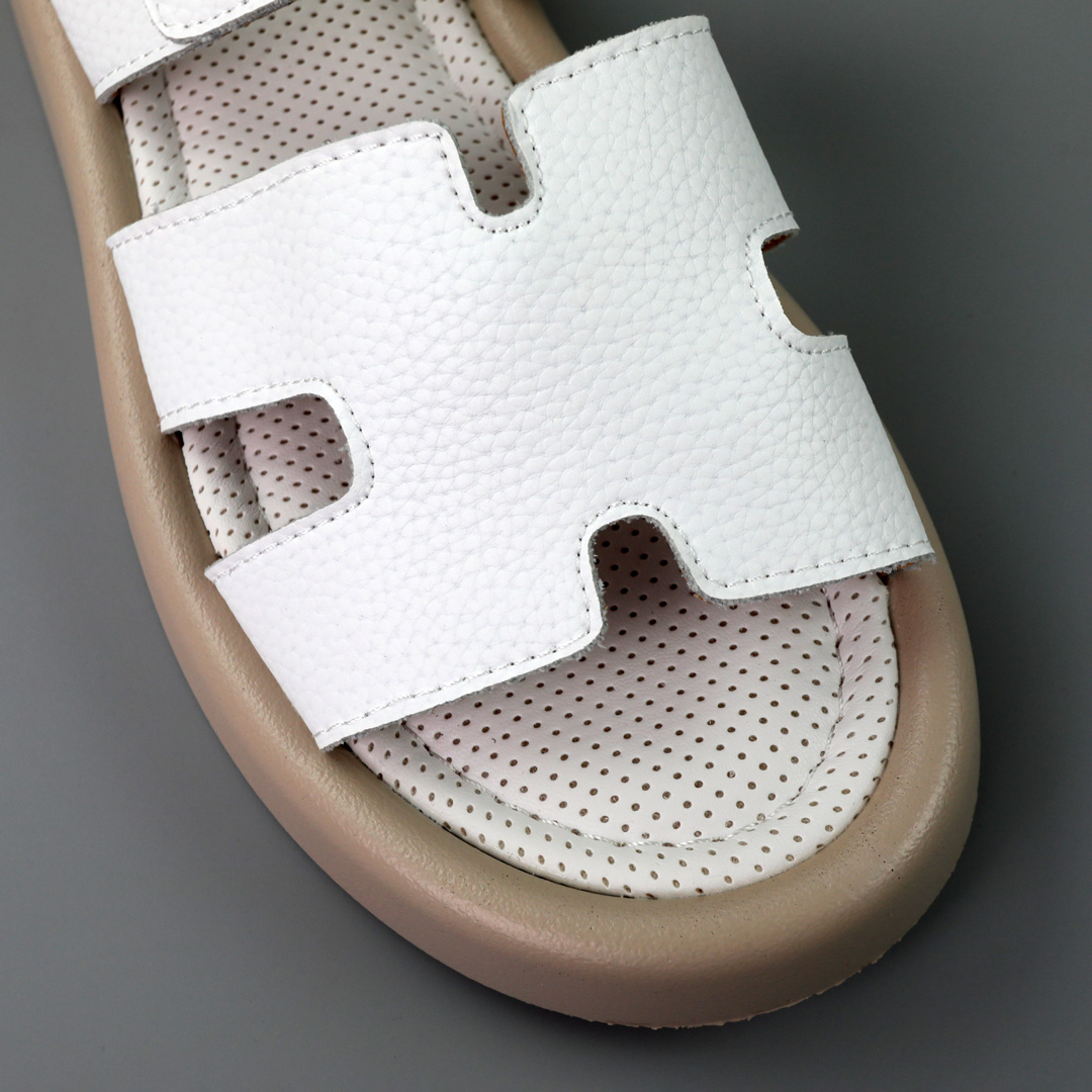 Откройте для себя безграничный комфорт и элегантность с нашими шлепанцами, изготовленными из высококачественной натуральной кожи в белом цвете. Эти шлепанцы – воплощение легкости и стиля, идеальный выбор для современной женщины, которая ценит комфорт и моду.