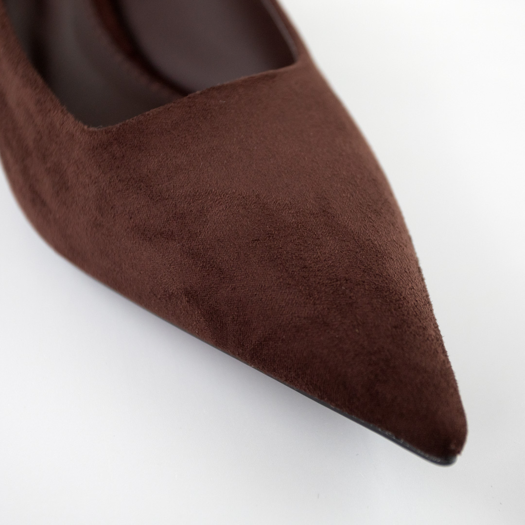 Окунитесь в стиль и элегантность с нашими женскими туфлями в непревзойденном шоколадном цвете на высоком каблуке. Эти туфли изготовлены из высококачественной экозамши, которая не только придает им легкость, но и подчеркивает ваш изысканный вкус и приверженность принципам нравственной моды.