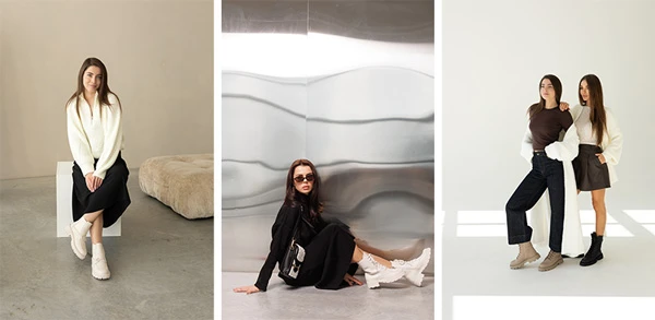 - Козаки - напівчоботи з невеликим підбором і округлим піднятим носом. Часто прикрашені пряжками чи заклепками. Оптимальні для стилізації ковбойських образів та луків бохо.