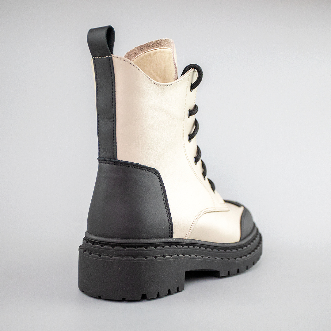 Черевики виготовлені з натуральної шкіри, що робить їх навіть більш привабливими, оскільки цей матеріал якісний. Вони виглядають ідеально і підкреслюють ваш стиль і смак. Але головна перевага цих черевиків - це їхнє внутрішнє утеплення з натурального хутра. Вони стануть найкращими союзниками в зимовий період, надаючи вам тепло та комфорт. Ця пара в світлому кольорі легко поєднується та чудово підійде на кожен день.