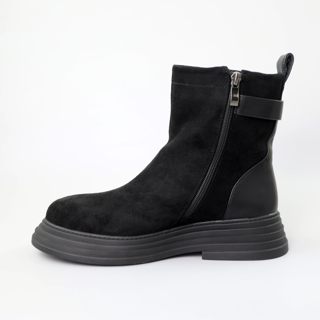 Черевики виготовлені з екозамші, що робить їх навіть більш привабливими, оскільки цей матеріал якісний. Вони виглядають ідеально і підкреслюють ваш стиль і смак. Але головна перевага цих черевиків - це їхнє внутрішнє утеплення з екохутра. Вони стануть найкращими союзниками в зимовий період, надаючи вам тепло та комфорт. Ця пара в чорному кольорі легко поєднується та чудово підійде на кожен день.