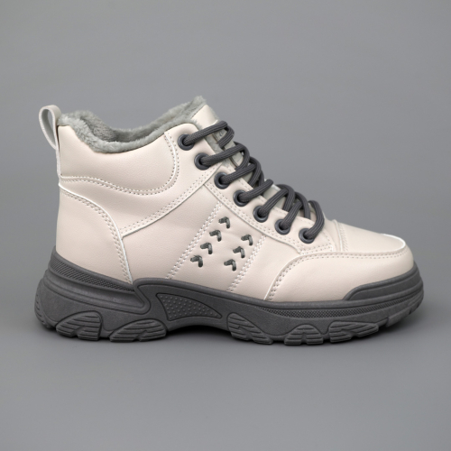 Ці молочні кросівки виготовлені з екошкіри, що робить їх навіть більш привабливими, оскільки цей матеріал екологічно чистий та легкий в догляді. Вони виглядають ідеально і підкреслюють ваш стиль і смак. Але головна перевага цих кросівок - це їхнє внутрішнє утеплення з екохутра. Вони стануть найкращими союзниками в зимовий період, надаючи вам тепло та комфорт. Ця пара в молочному кольорі легко поєднується та чудово підійде на кожен день.